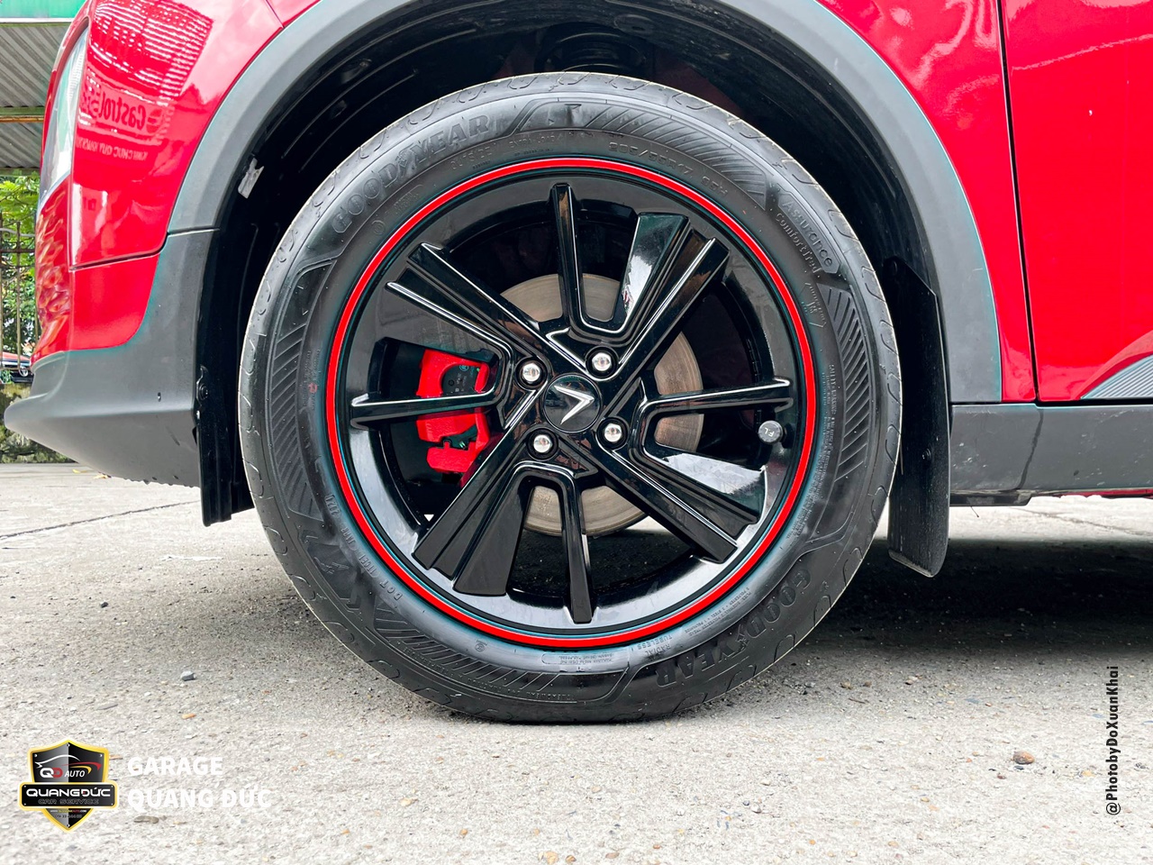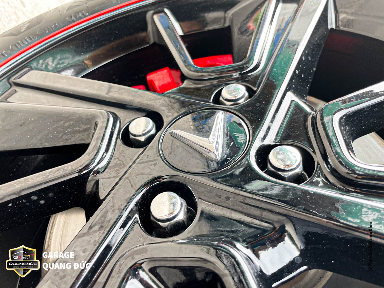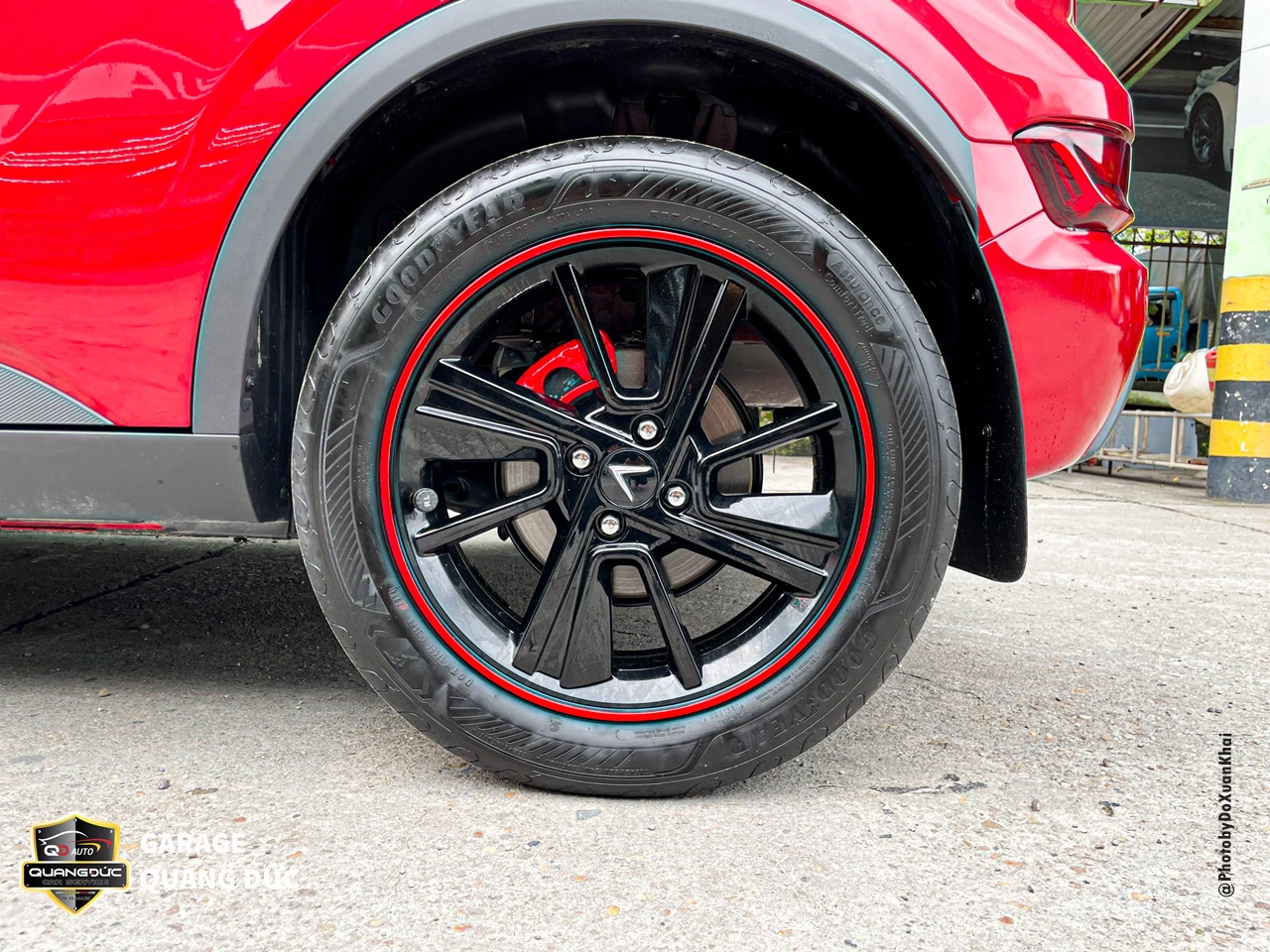 Chủ xe đã quá nhàm chán với chiếc vành lazang của xe ô tô truyền thống khi mua xe ô tô vậy nên đã thay đổi phong cách bằng việc sơn đổi màu lazang tại Garage Quang Đức Auto. Với rất nhiều màu đen mang đến cá tính thể thao, khỏe khoắn, làm chiếc xe thanh thoát hơn kèm theo đó là điểm nhấn chỉ đỏ chạy quanh đường kính lazang tăng thêm vẻ khỏe khoắn cho dàn chân của chiếc xe này.