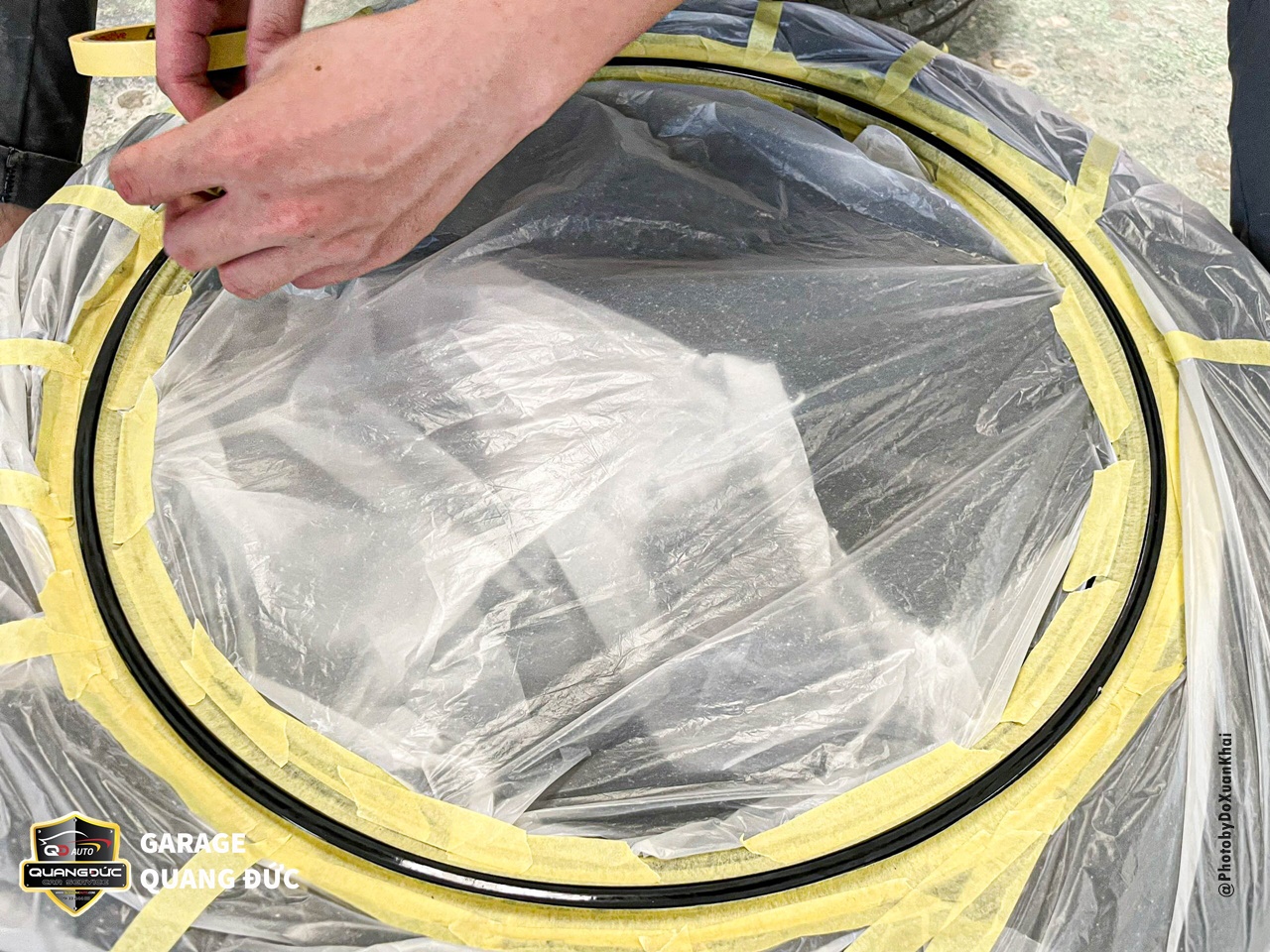Bước 3: Bọc và che chắn các vị trí không sơn để tránh lan màu.