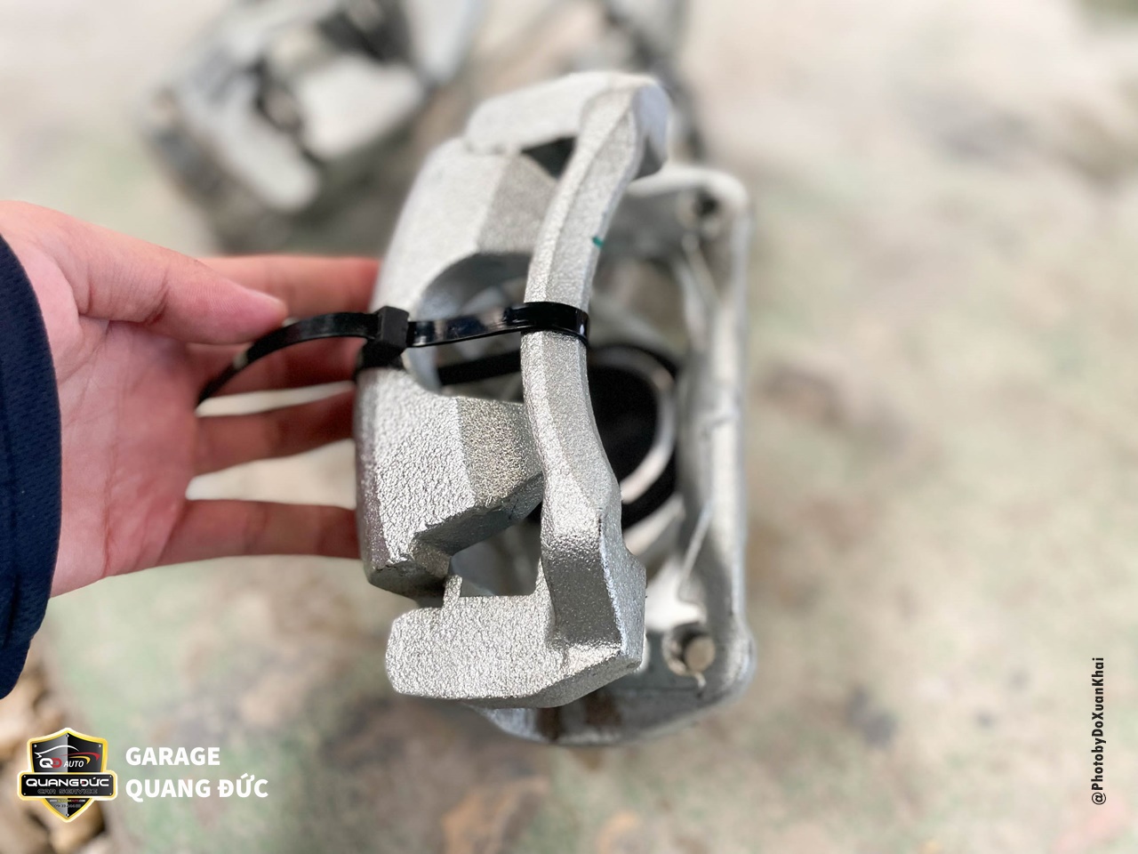 Bước 2: Loại bỏ sơn cũ và xử lý gỉ sét (nếu có) Tiếp theo, loại bỏ lớp sơn cũ và xử lý gỉ sét (nếu có). Sử dụng máy mài lắp giấy nhám để loại bỏ sơn cũ và làm sạch gỉ sét trên bề mặt. Nếu cùm phanh bị biến dạng, thực hiện kỹ thuật làm đồng cùm phanh để phục hồi bề mặt.