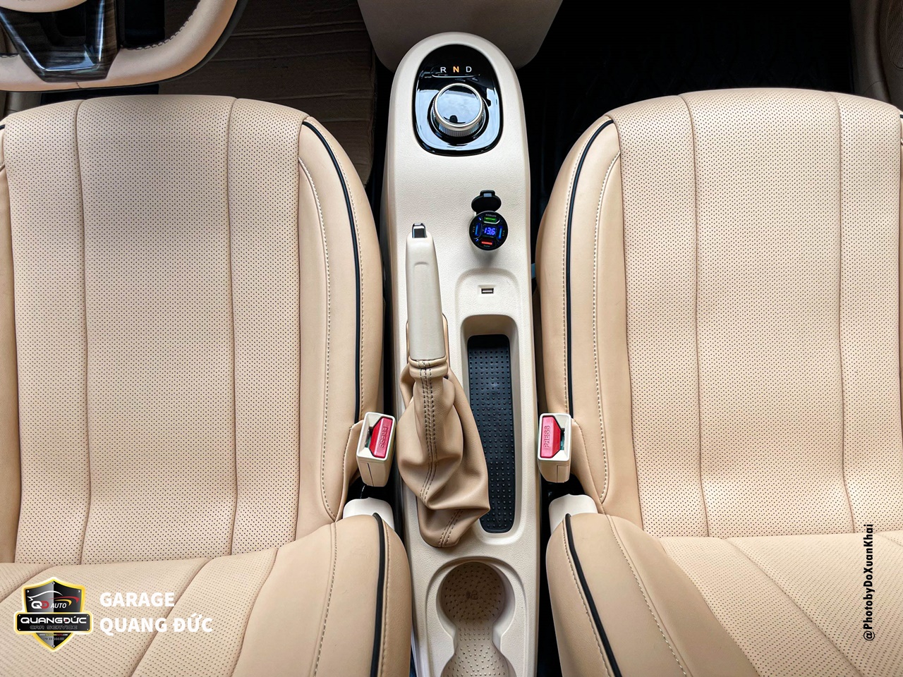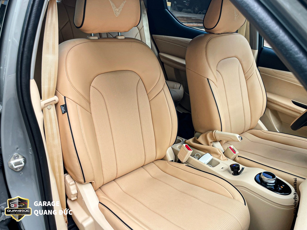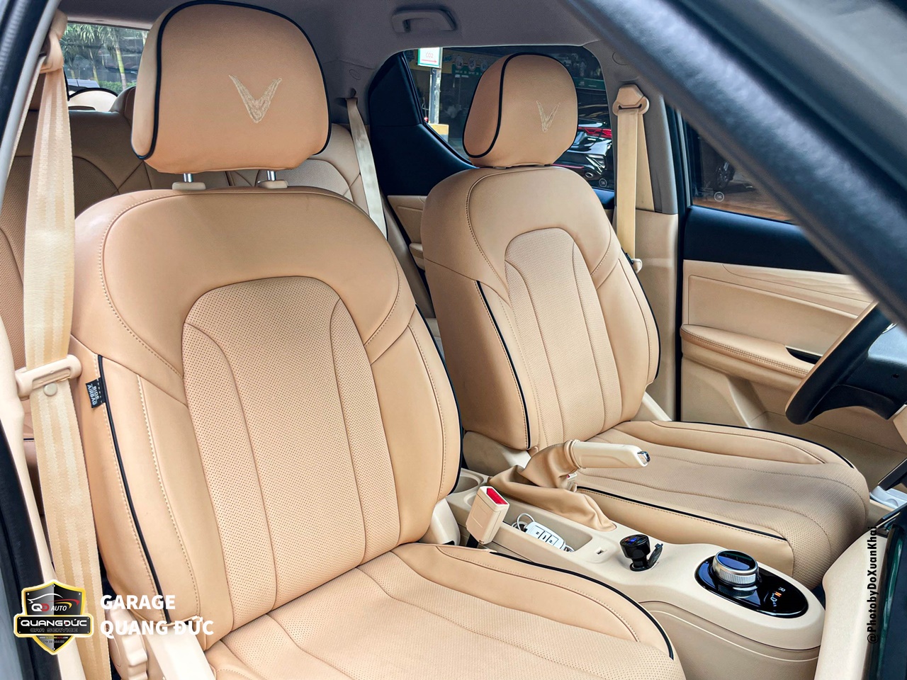 Các chi tiết nhựa xuất hiện khá nhiều bên trong nội thất của chiếc xe VF5 này, nguyên bản chúng đều có màu đen và chất liệu là nhựa sần có thể kể đến như: Taplo. tapi, vị trí túi khí volang, hộc để đồ bên phụ, yên ngựa chứa phanh tay & núm chuyển số, …. Khi thi công các bộ phận này Quang Đức auto đã thực hiện vệ sinh bề mặt, sơn Dupont phủ màu kem lên toàn bộ các chi tiết nhựa trong nội thất.