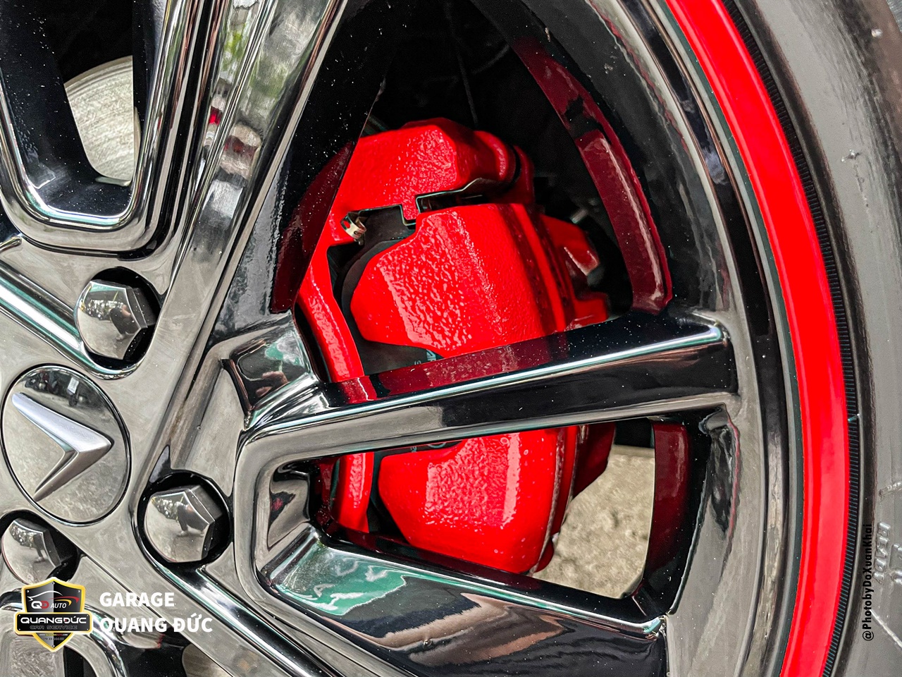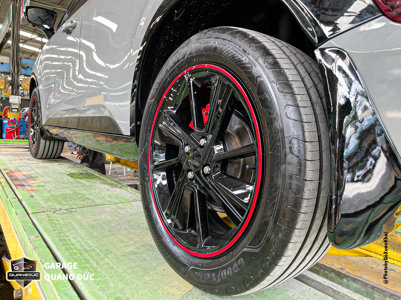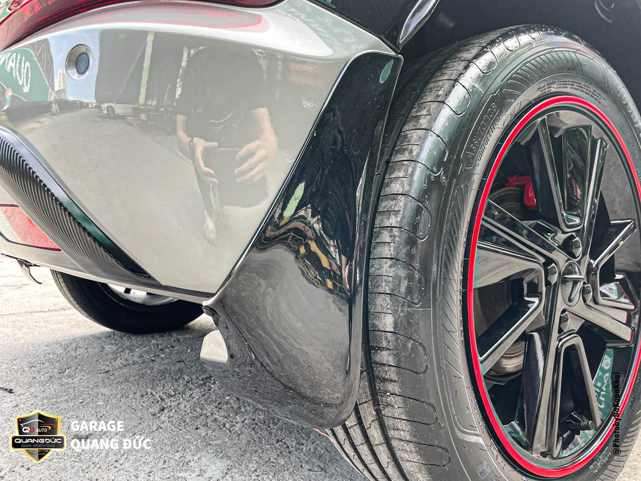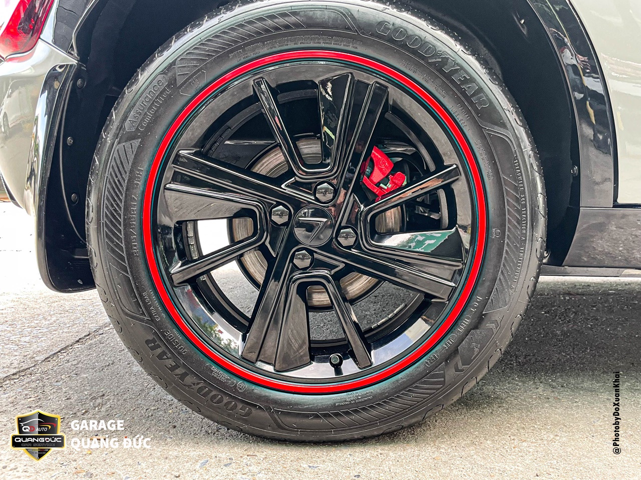 Chủ xe đã quá nhàm chán với chiếc vành lazang 17inch màu bạc truyền thống khi mua xe ô tô vậy nên đã thay đổi phong cách bằng việc sơn đổi màu lazang tại Garage Quang Đức Auto. Với rất nhiều màu đen mang đến cá tính thể thao, khỏe khoắn, làm chiếc xe thanh thoát hơn kèm theo đó là điểm nhấn chỉ đỏ chạy quanh đường kính lazang tăng thêm vẻ khỏe khoắn cho dàn chân của chiếc xe này.