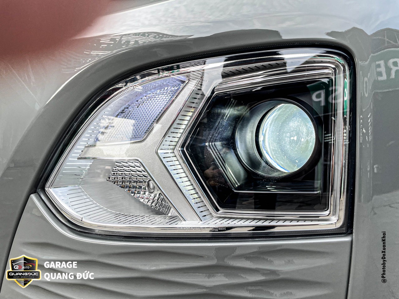 Đường nhận dạng phía trước hình cánh chim nguyên bản chỉ là mạ crom, Quang Đức Auto đã nâng cấp lên dải led định vị, tạo điểm nhấn cho toàn bộ chiếc xe nhất là vào buổi tối. Dải led không chỉ làm định vị mà còn có chức năng báo rẽ, xi nhan lớn rõ ràng giúp xe đối diện kịp thời nhận thấy sự chuyển hướng để tránh xảy ra va chạm.