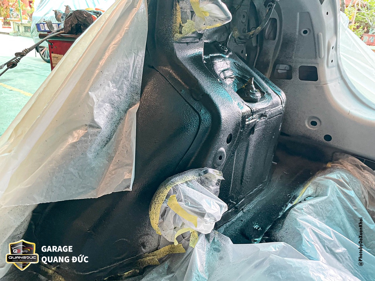 Bước 3: Bọc và che chắn các vị trí không sơn để tránh lan màu.