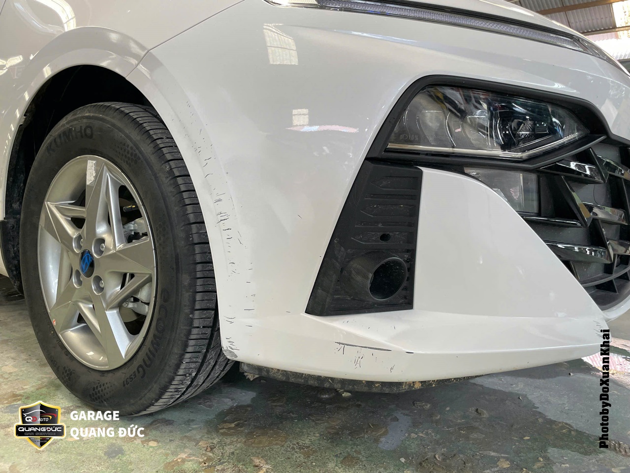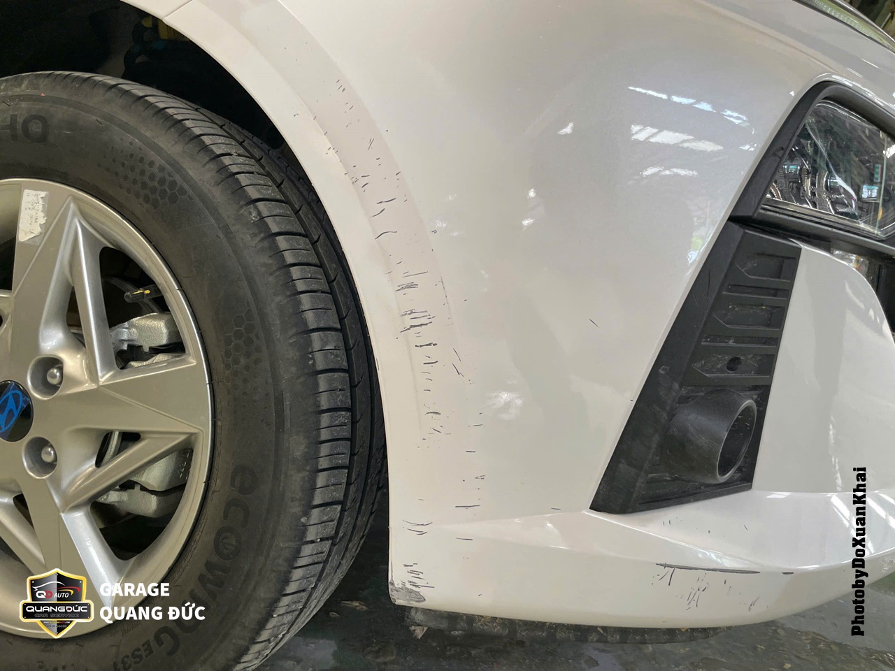 Chiếc xe được xác định xước sâu vào phần nhựa tại vị trí cản trước bên phụ, kèm theo những vết xước dăm xung quanh do động vật thú cưng tại nhà gây ra.