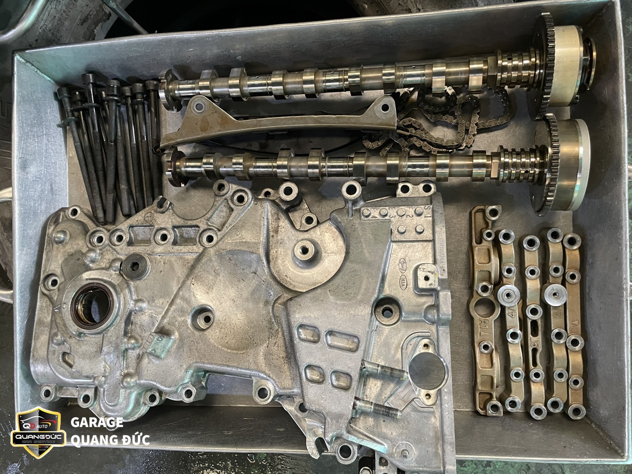 Những bộ phận, chi tiết cần thay thế bao gồm: Bơm nước làm mát, Gioăng nắp giàn cò, gioăng mặt máy, phớt đầu trục cơ, van hằng nhiệt,...