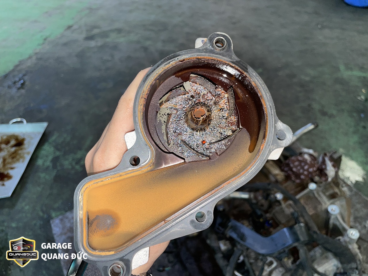 Trên thực tế, thiếu nước làm mát có thể không phải nguyên nhân chính gây ra hiện tượng quá nhiệt, nên việc bổ sung thêm nước làm mát ( hỗn hợp gồm nước sạch và nước làm mát theo tỉ lệ 50/50) chỉ có tác dụng khắc phục tạm thời, sau đó cần đem xe đến garage ngay để xử lý triệt để. Nếu không các chi tiết bên trong xe bị phá hủy như những hình ảnh dưới đây.